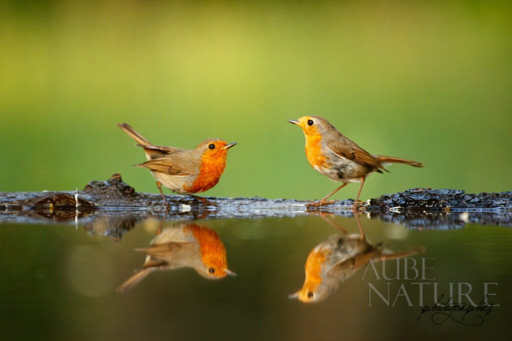 Premier affût, premier cliché… Sur la quinzaine d’espèces observées, de belliqueux rouges-gorges familiers aux abords de la petite mare forestière conçue pour les photographier…